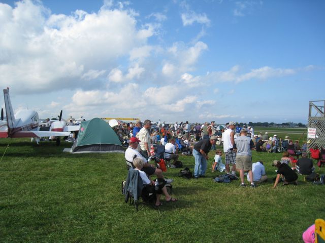 Etwas Besonderes an Oshkosh ist die Tatsache, dass es keine Absperrungen gibt. An der Flightline gibt es einen Kreidestrich, der nicht überschritten werden darf , rollt ein Flugzeug an seine Parkposition, muss man zur Seite gehen. Das ganze funktioniert wunderbar, jeder hält sich dran.