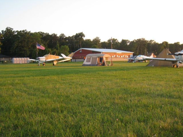 Der Abend wird (wie alle Folgenden) richtig gemühtlich. Wir haben next to N82746, vor meinem Zelt Klapptisch und Klappstühle aufgebaut und schlürfen Budweiser. Wir sind umgeben von Fliegern mit ihren Familen die es genau so machen. Ab und zu kommt jemand vorbei, wir unterhalten uns und geniesen den Abend weiter.